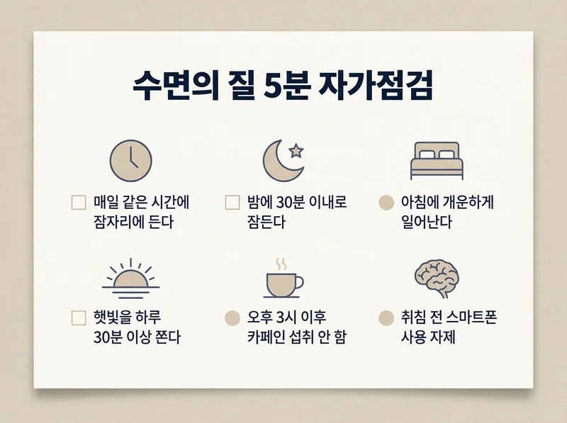 체크가 많다면, “잠을 더 오래”보다 일정(기상 고정)과 환경, 잠들기 전 루틴부터 바꾸는 편이 효율적입니다.