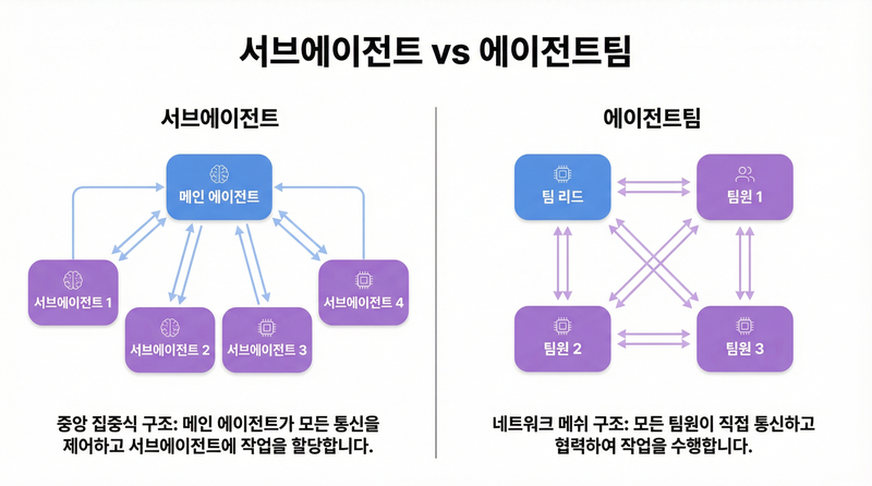 | 구분 | 서브에이전트 | 에이전트팀 |