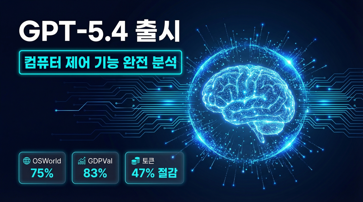 2026년 3월 6일 새벽 3시, OpenAI가 GPT-5.4를 출시했어요. 컴퓨터를 직접 조종하는 기능부터 지식 근로 벤치마크 83% 달성까지 굵직한 변화들이 담겨 있어요. GPT-5.4의 핵심 내용을 살펴볼게요.