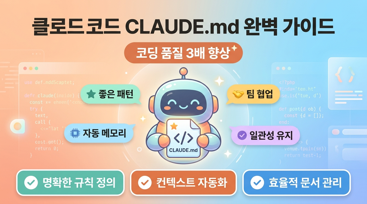 클로드코드 사용법을 익혔는데도 Claude가 지시를 자꾸 무시한다면, 문제는 코드가 아니라 CLAUDE.md 파일에 있을 가능성이 높습니다. CLAUDE.md를 제대로 작성하면 Anthropic 공식 문서 기준으로 코딩 품질이 2~3배까지 올라갑니다. 이 글에서는 CLAUDE.md의 작동 원리부터 나쁜 패턴, 좋은 패턴, 그리고 Auto Memory 활용법까지 실전 중심으로 정리합니다.